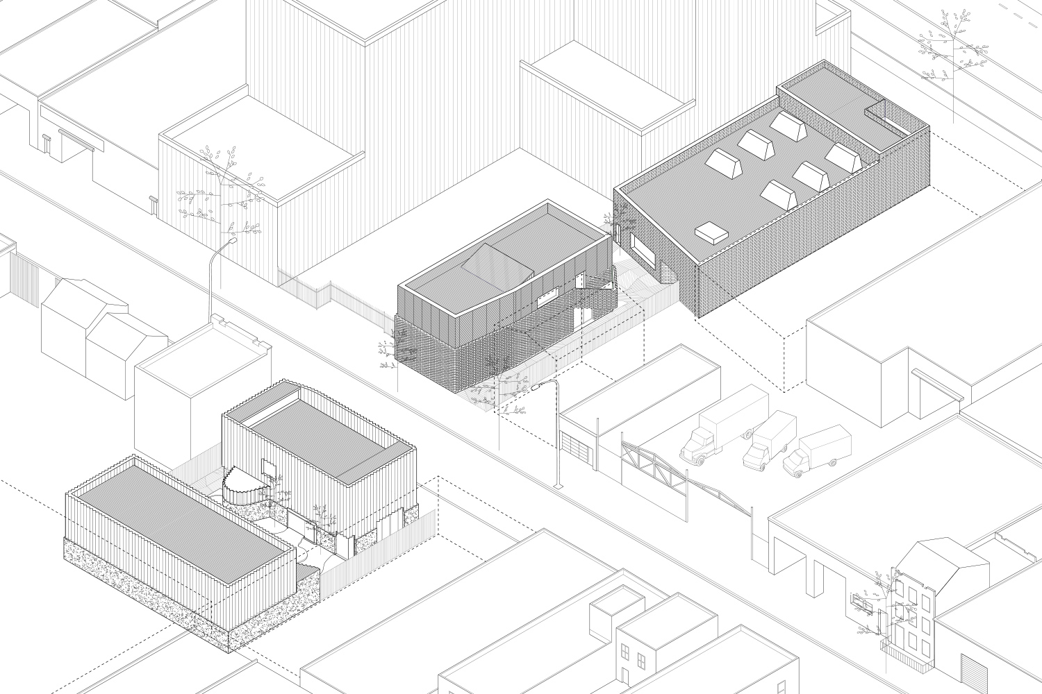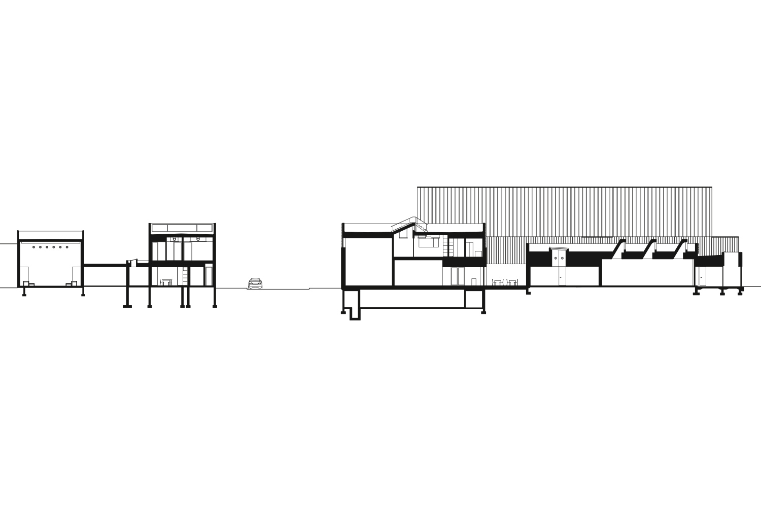 Die einzelnen Volumen fügen sich in das städtische Gefüge ein, der Mini-Campus ist Teil der lokalen Gemeinschaft. Außenbereiche, Eingänge und neu geschaffene Durchgänge verbinden öffentliche und private Räume und machen die zentralen Funktionen für die Besucherinnen und Besucher zugänglich. Der spielerische Umgang mit Backstein und Beton verleiht den Gebäuden vertraute Charakterzüge. Jedes der vier Volumen bietet eine in Proportion, Lichtqualität und Infrastruktur einzigartige Galerie. Der Campus ist flexibel geeignet für Gruppenausstellungen und individuelle Programme sowie für technisch anspruchsvolle Installationen. Materialien wie Schalungsplatten, Backstein und verzinkte Stahlstäbe erzeugen Schatten, Reflexionen und Taktilität, fügen sich in den industriellen Kontext ein und vermitteln gleichzeitig Vertrautheit und Alltäglichkeit.