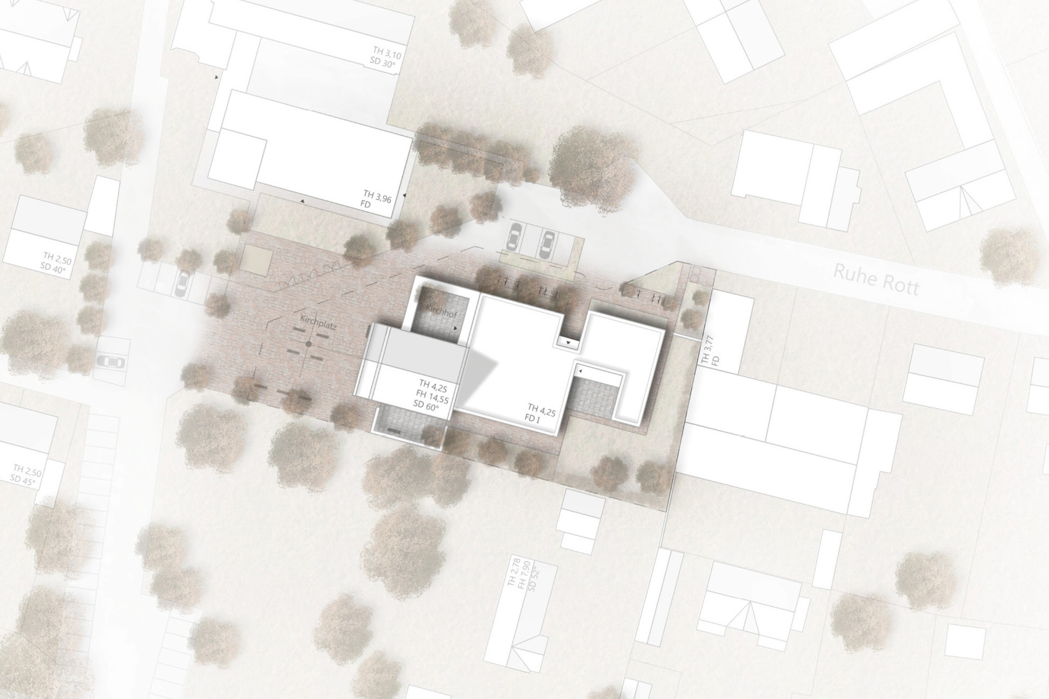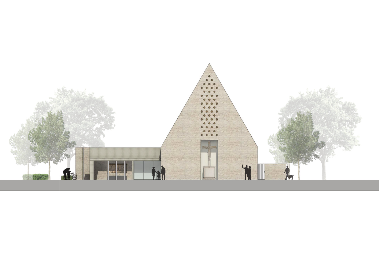 Der Neubau des Josefzentrums übernimmt die identitätsstiftende Rolle der ehemaligen Josefskirche und fügt sich mit seinem markanten Volumen als prägendes Element in das städtebauliche Umfeld von Greven ein. Das Zentrum vereint Kirche, Gemeindehaus und Freiräume zu einem Ort der Begegnung: Kirchplatz, Kirchhof und Forum schaffen öffentliche und halböffentliche Räume, die als Treffpunkt für Gemeindemitglieder und Stadtbewohner dienen.