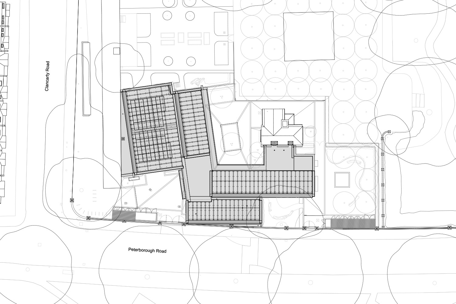 Inspiriert von den Gewächshäusern, die sich historisch auf dem Gelände befanden, ermöglicht der Einsatz einer CO₂-armen, verantwortungsvoll beschafften CLT-Konstruktion in den Pavillons ein hohes, einseitig geneigtes Dach und nahtlose, offene Grundrisse. Die entstehenden Räume beherbergen vielfältige Gemeinschaftseinrichtungen, darunter eine eigene Kita, ein Café und Veranstaltungsräume. Sie sind auf einer Ebene angeordnet, für alle zugänglich und lassen sich leicht für andere Nutzungen umkonfigurieren.