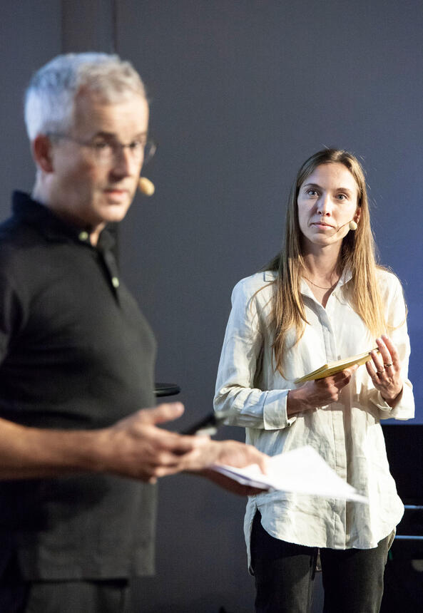 Aufgrund der stetig wachsenden internationalen Bedeutung des Preises fand die Verleihung in diesem Jahr zweisprachig statt: Jens Kallfelz, Geschäftsführer der Kommunikationsagentur Kopfkunst, der den Preis seit seiner ersten Auslobung 2008 eng begleitet, führte auf Deutsch durch den Abend. Für die Gäste aus Mexiko, Spanien, England, Irland und den Niederlanden übersetzte Bauwelt-Redakteurin Josepha Landes auf Englisch. Ein Thema der Moderation, bevor es zum Höhepunkt des Abends, der Bekanntgabe der Gewinnerinnen und Gewinner ging, war der neue Namensgeber Erich Mendelsohn. In seinem Grußwort lobte Dr. Thomas Welter, Bundesgeschäftsführer des Bundes Deutscher Architektinnen und Architekten BDA, die Entscheidung: „Mit Erich Mendelsohn hat man einen Namen gefunden, der hervorragend zum Preis passt: Er konnte mit allen Baustoffen umgehen, auch Backstein“. Ernst Buchow, Vorsitzender der auslobenden Initiative Bauen mit Backstein, warf in seinem Grußwort einen Blick auf die Zukunft des Backsteins: „Wir haben alle Antworten auf die Fragen, die gestellt werden. Ich bin fest überzeugt, dass wir es schaffen, Ziegel klimaneutral herzustellen!“