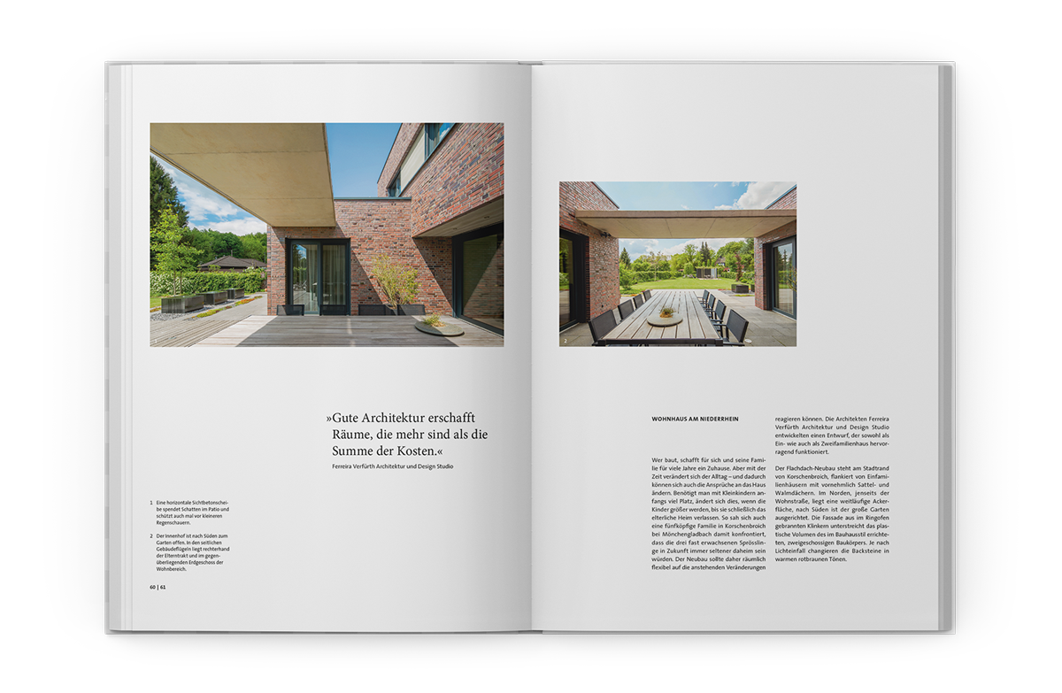 Knapp 30 Bauprojekte vereint das Buch „Moderne Einfamilienhäuser aus Backstein“. Die Gebäude sind vollkommen unterschiedlich. Die einzige Gemeinsamkeit: Sie sind von überzeugender Qualität und mit Backstein gebaut.