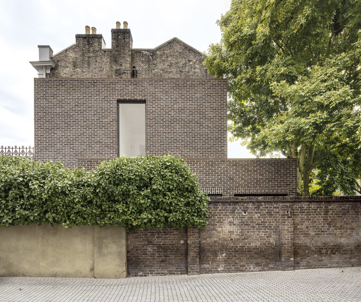 The use of pigmented lime mortar allowed the entire structure to be constructed without movement joints. The original brick that was removed to create the new opening has been reused as window reveals in the historic structure. The modern white paint was carefully removed from the back wall and boundary walls, revealing the original brickwork and creating a unified composition.